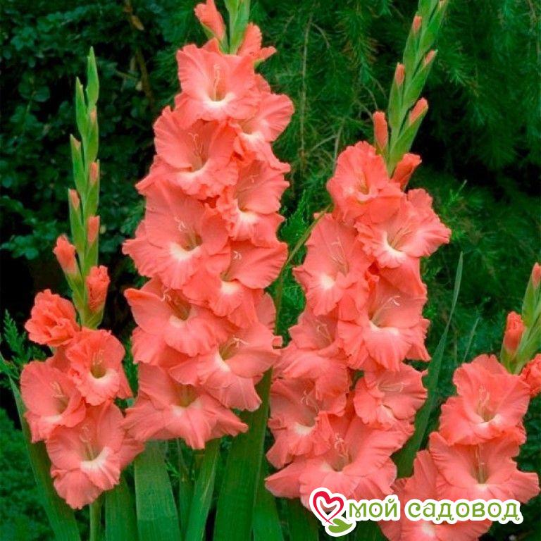 Читать далееЛуковицы гладиолуса гибридного Berlusconi используют для создания ярких цветников, расположенных на хорошо освещенных или частично затененных участках. Место следует выбирать таким образом, чтобы не было сквозняков. К почве культура неприхотлива. Высота стеблей гладиолуса гибридного Berlusconi достигает до 150 см. Большая часть из этой длины – мощные соцветия. Цветы крупные, красивой розово-лососевой окраски с небольшим белым бликом по центру лепестка. Смотрятся такие композиции очень красочно. Цветение продолжается с июля до сентября и сопровождается приятным цветочным ароматом.